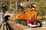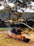4520 + 4490 on NL71, the NSW Rail Transport Museum Barrington Wilderness Explorer Tour emerge from Long Island Tunnel onto the Hawkesbury River bridge on May 25th, 1997 |