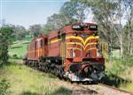 4520 + 4490 on NL71, the NSW Rail Transport Museum Barrington Wilderness Explorer Tour pass through Wards River en route to Stratford on May 25th, 1997 |