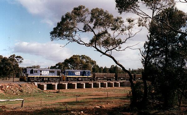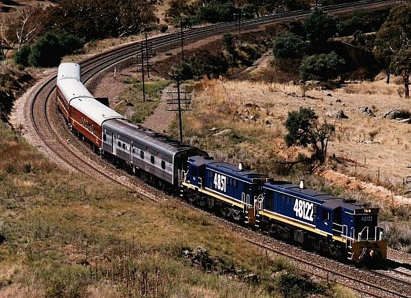 48122 & 4851 lead SL15 Sydney to Griffith passenger through the Cullerin Ranges due to the failure of 42220. March 15th, 1997 |