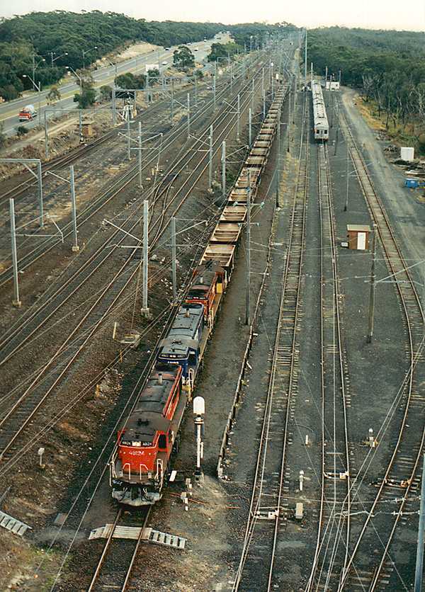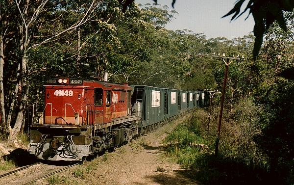 48149 leads a BHP coal train with 4865 bringing up the rear on the Redhead Branch on December 6th, 1991. |