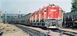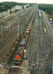 48124, 48123 and 48129 lead a down ballast train through the down refuge at Waterfall. Taken from atop the 120 foot light tower at the southern end of the yard on June 27th, 1995. |
