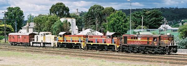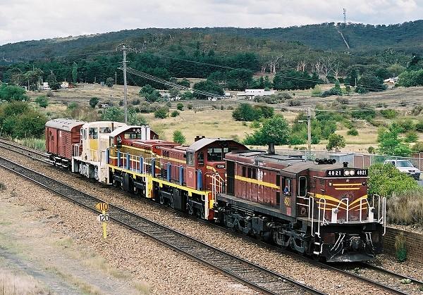 4821, 7315 & 7319 depart Goulburn Roundhouse bound for Medway Quarry on February 9th, 2002. |