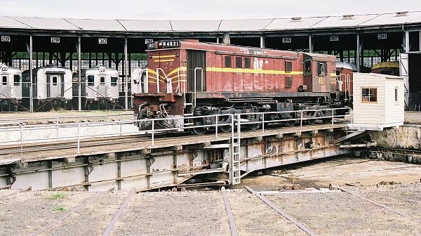 4821 moves onto the turntable at Goulburn Roundhouse on February 9th, 2002. |