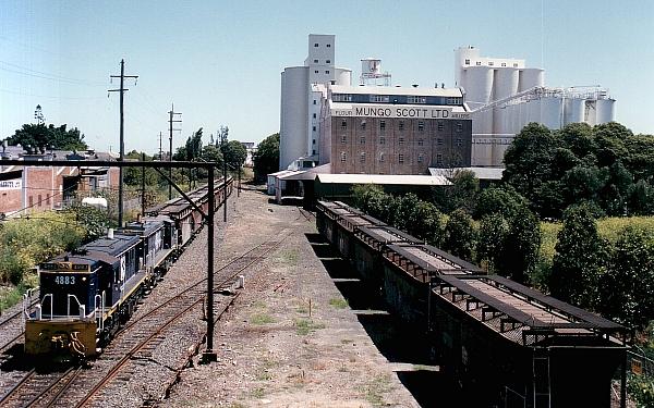 4883 & 4848 shunt a wheat train at Mungo Scott's siding near Summer Hill on January 9th, 1997. |