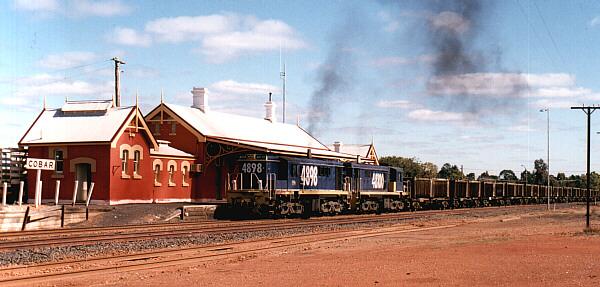 4898 and 48100 on UP Elura Ore train at Cobar station on July 22nd, 1996. |