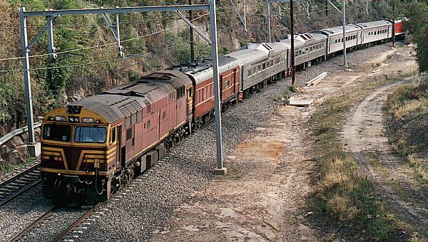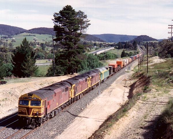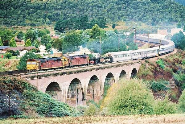 Two 80s lead WL-1 Indian Pacific across the Bowenfels viaduct. |