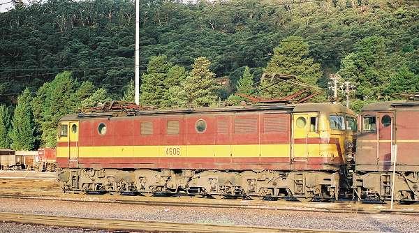 4606 in reverse yellow colour scheme stands at Lithgow on April 14th, 1990. |
