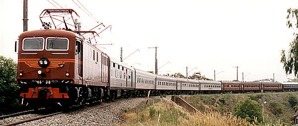 4638 hauls HE15, the RTM mystery tour around the sharp bend at Sutherland towards Cronulla on December 7th, 1997. |