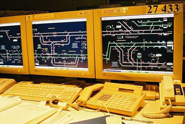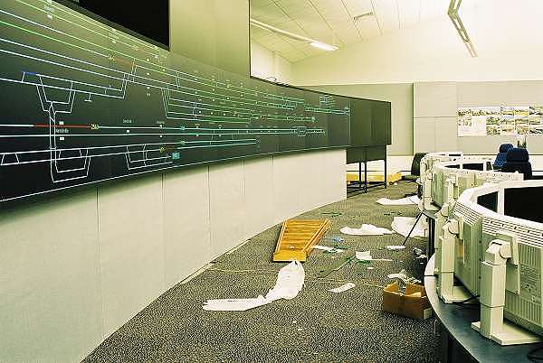 The new Sydenham Box has rear projection overview screens with a number of workstations, seen here before being switched over on July 17th, 2002. |