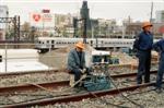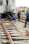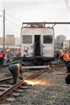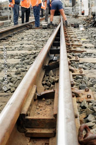 Infrastructure workers repair the track. |